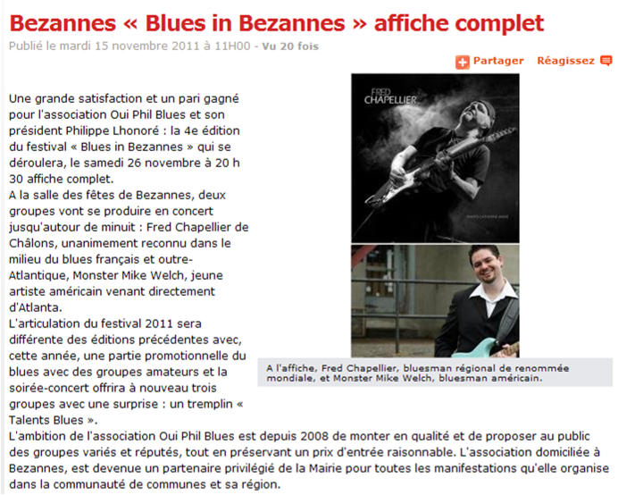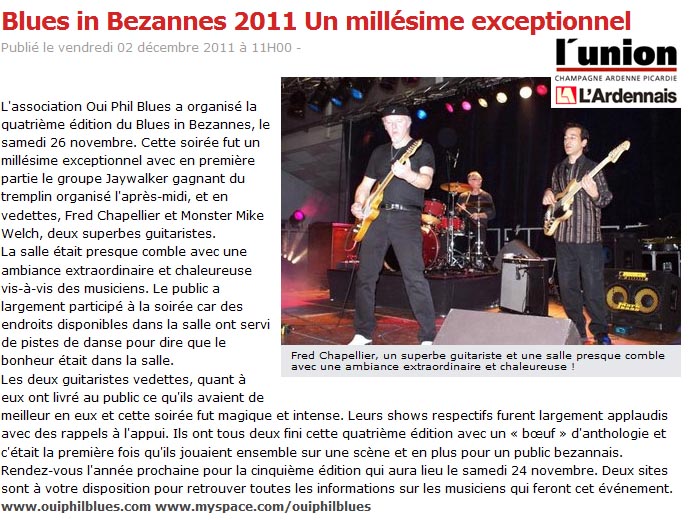 Puis en dernière partie, MONSTER MIKE WELCH, un jeune guitariste américain venu tout droit de Chicago. Guitariste très inspiré toute en finesse , toute en puissance et plongé dans un blues à multi facettes ô combien plaisant et efficace!!!!